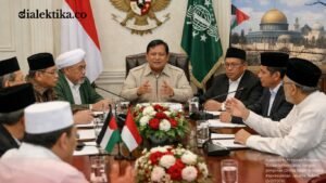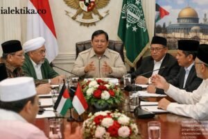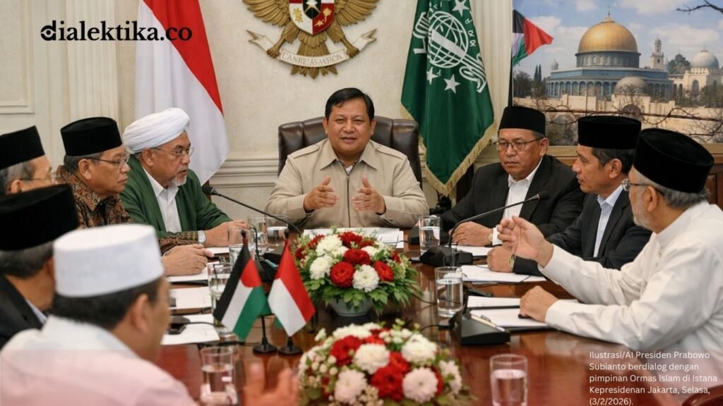 JAKARTA,Dialektika.co – PRESIDEN Prabowo Subianto menemui sejumlah organisasi kemasyarakatan Islam di Istana Kepresidenan Jakarta, Selasa, (3/2/2026). Pertemuan itu menjadi ajang pertukaran pandangan terkait keputusan Indonesia bergabung dalam Dewan Perdamaian atau Board of Peace serta konsekuensinya bagi isu Palestina. Sejumlah pimpinan Ormas Islam hadir dalam pertemuan tersebut, di antaranya Pengurus Pusat Muhammadiyah, Pengurus Besar Nahdlatul Ulama, dan Majelis...