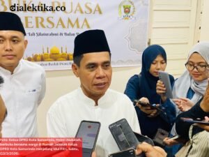 SAMARINDA, Dialektika.co — Buka puasa bersama antara pemerintahan kota dan awak media digelar Jumat sore, (13/3/2026), di Musholla Ar-Raudah Balaikota. Dalam acara itu, Andi Harun menyampaikan permohonan maaf menjelang Idul Fitri 1 Syawal 1447 Hijriah, serta memaparkan kondisi fiskal dan prioritas pemerintahan kota ke depan. Di hadapan para jurnalis, Andi Harun menegaskan ucapan “takabbalallahu minna...