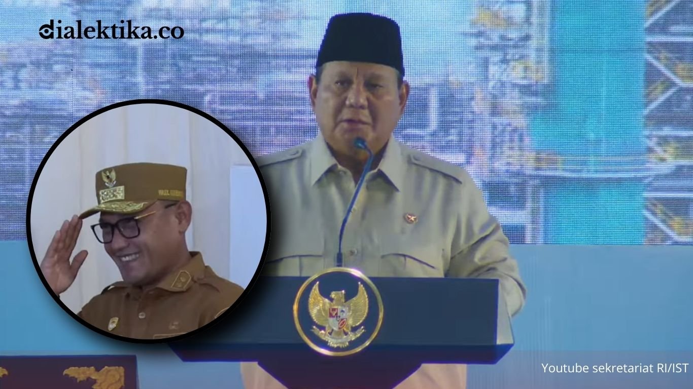 Presiden Prabowo, sebelum berpidato, mencairkan suasana dengan menyapa para pejabat utama. Setelah menyebut Gubernur Rudy Mas’ud dan Wali Kota Rahmad Mas’ud yang bersaudara, perhatiannya beralih ke sosok di samping sang gubernur.